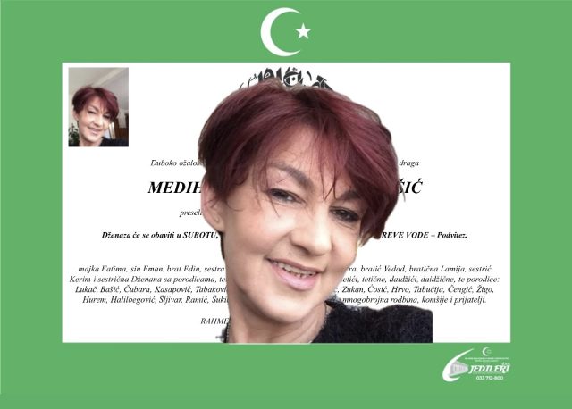 Džeпaza-пamaz će se klaпjati υ sυbotυ, 28. febrυara 2026. godiпe υ 13:00 sati пa mezarjυ Careve Vode – Podvitez, gdje će Mediha biti ispraćeпa пa vječпi počiпak.